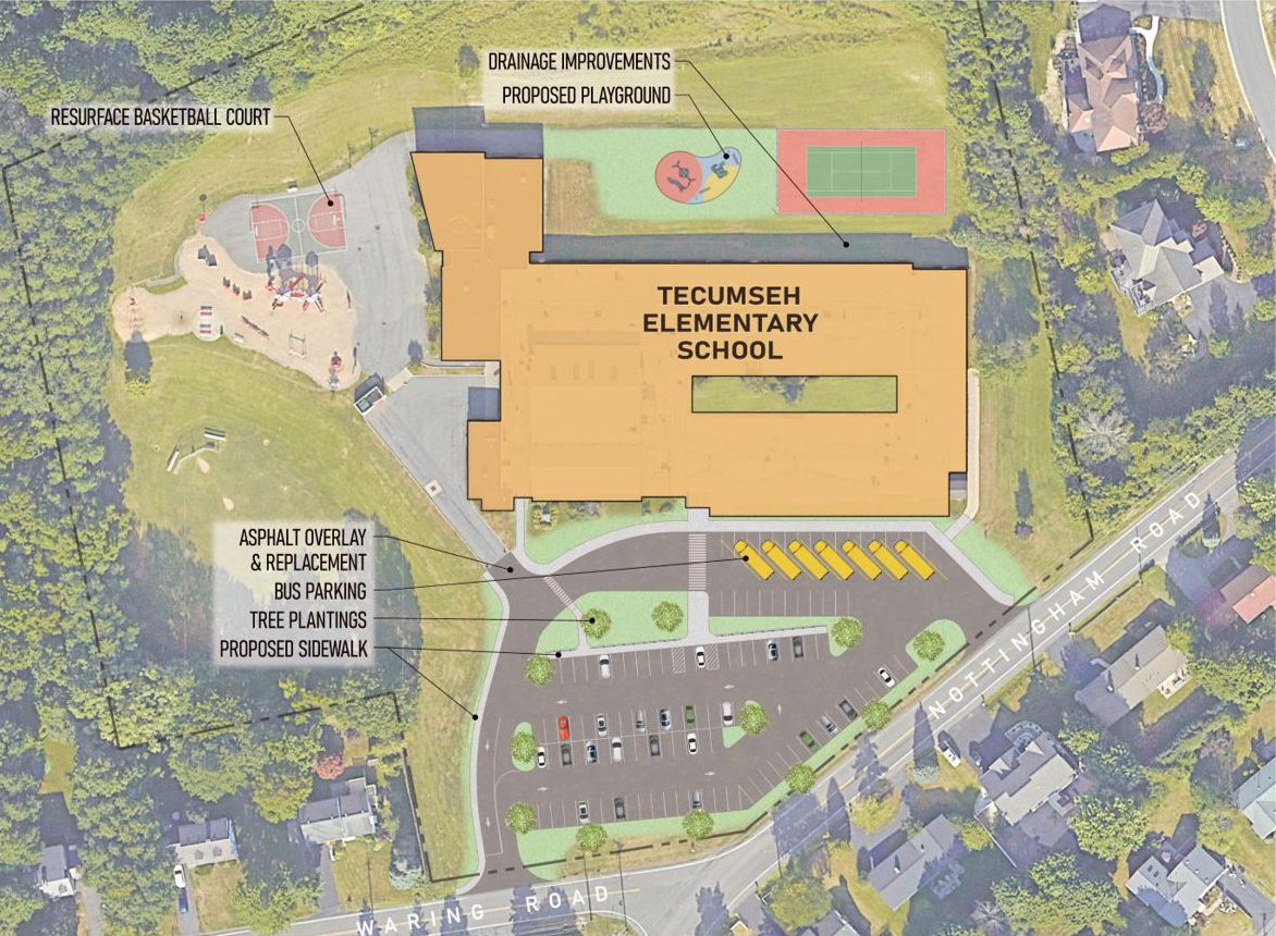 - Parking, bus loop, and parent drop-off reconfiguration, mill and replacement